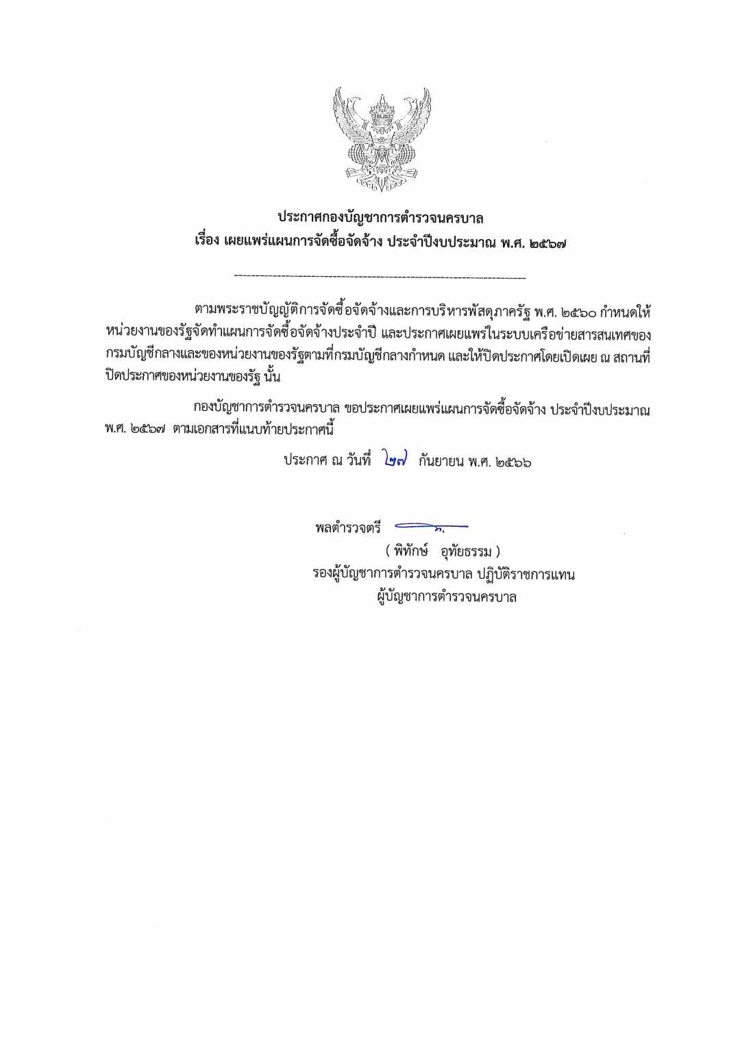 ประกาศกองบัญชาการตำรวจนครบาล เรื่อง แผนการจัดซื้อจัดจ้างประจำปีงบประมาณ พ.ศ.2567 จำนวน 3 รายการ