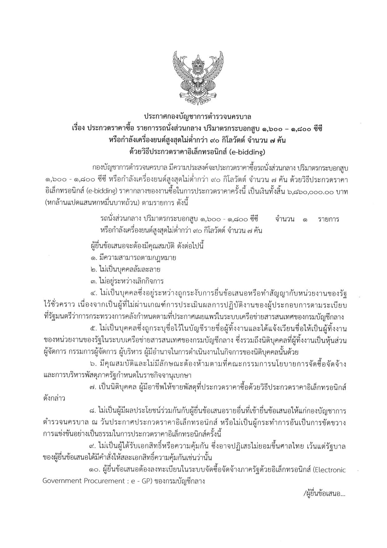 ประกาศกองบัญชาการตำรวจนครบาล เรื่อง ประกวดราคาซื้อ รายการรถนั่งส่วนกลาง ปริมาตรกระบอกสูบ ๑,๖๐๐-๑,๘๐๐ ซีซี