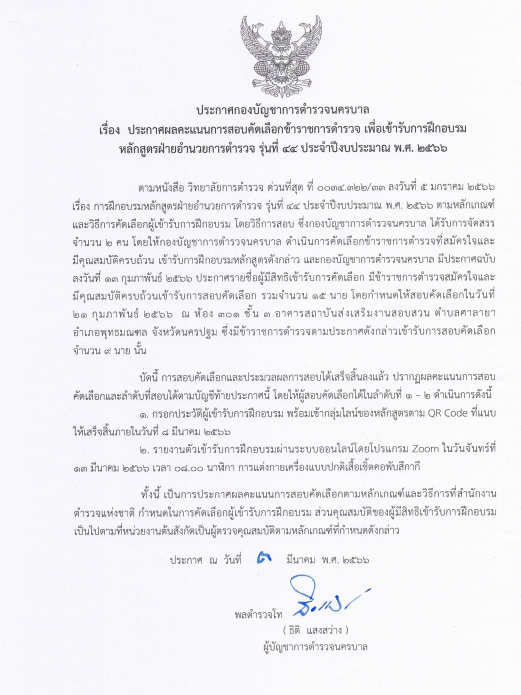 ประกาศกองบัญชาการตำรวจนครบาล เรื่อง รับสมัครและคัดเลือกบุคคลภายนอก เพื่อบรรจุเป็นนักเรียนนายสิบตำรวจ พ.ศ.๒๕๖๑