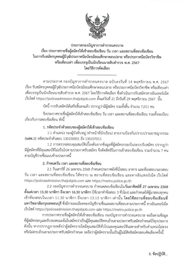 ประกาศกองบัญชาการตำรวจนครบาล เรื่อง ประกาศรายชื่อผู้ไม่ผ่านการตรวจร่างกายและทดสอบสุขภาพจิต ในการรับสมัครและคัดเลือก…