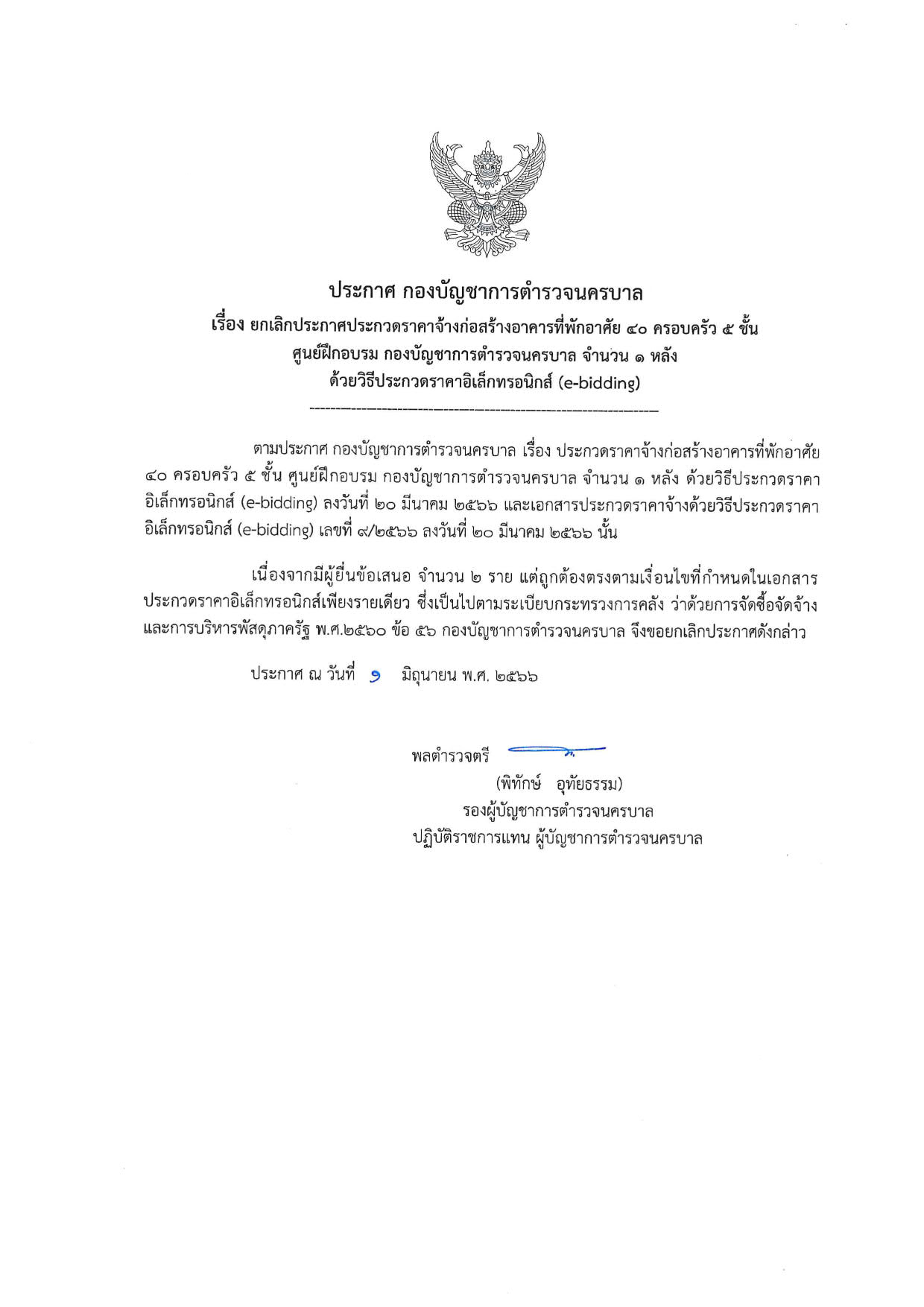ประกาศ กองบัญชาการตำรวจนครบาล เรื่อง ยกเลิกประกาศประกวดราคาจ้างก่อสร้างอาคารที่พักอาศัย 40 ครอบครัว 5 ชั้น…