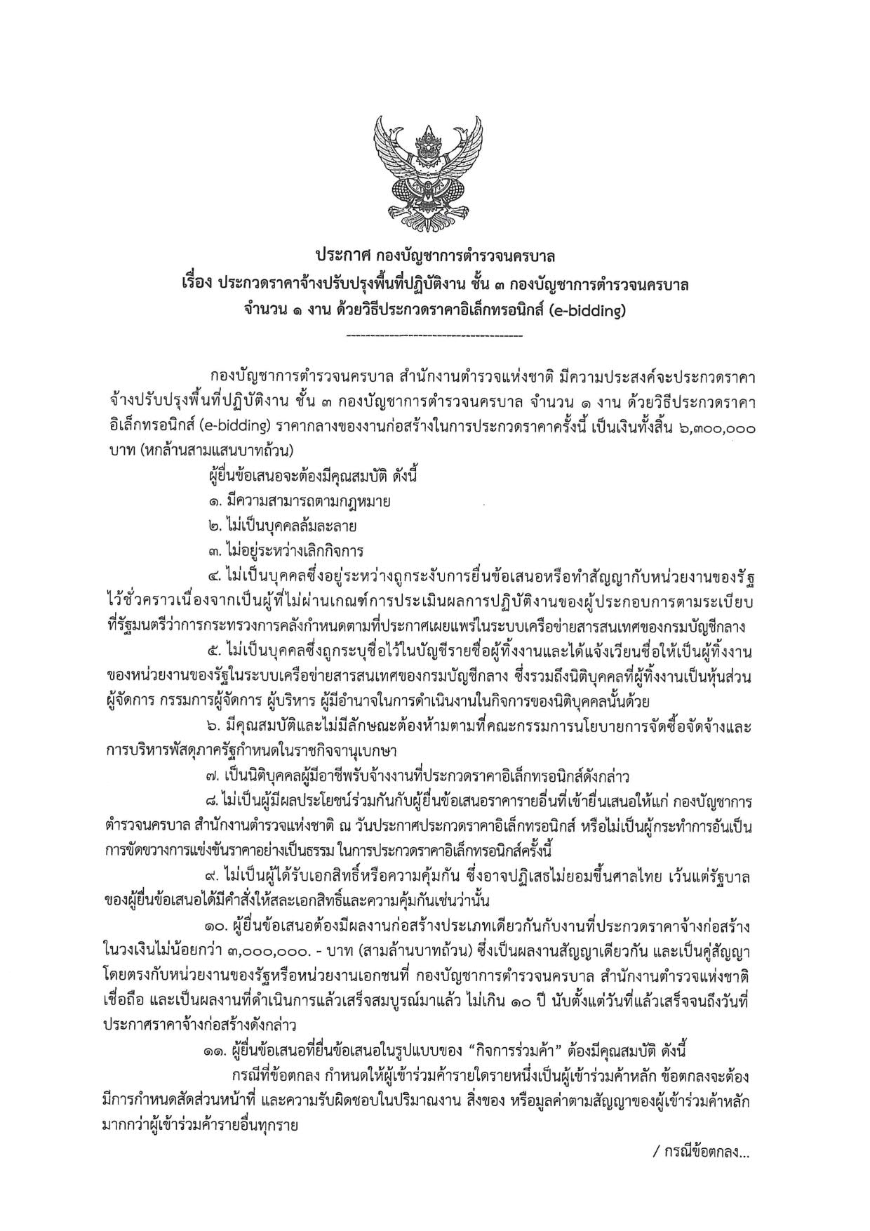 ประกาศ กองบัญชาการตำรวจนครบาล เรื่อง ประกวดราคาจ้างปรับปรุงพื้นที่ปฏิบัติงาน ชั้น 3 บช.น. จำนวน 1 งาน …