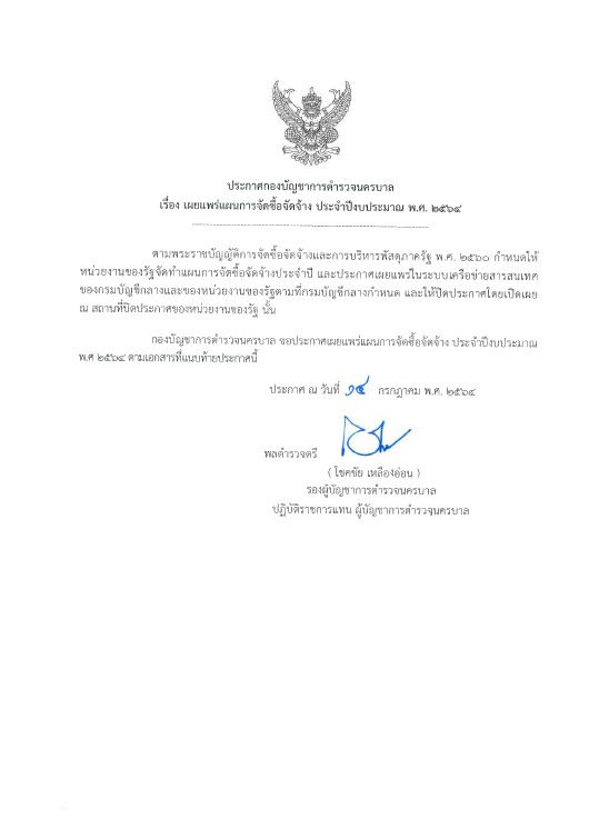 ประกาศ กองบัญชาการตำรวจนครบาล เรื่อง เผยแพร่แผนการจัดซื้อจัดจ้าง ปี ๒๕๖๔