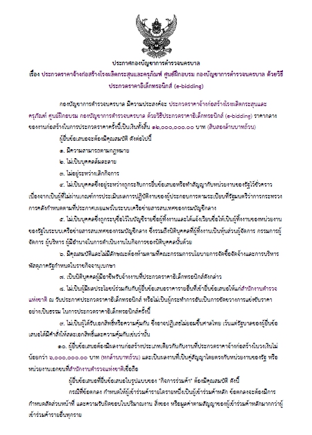 ประกาศ บช.น. เรื่องร่างประกวดราคาจ้างเหมาก่อสร้าง…ศฝร.บช.น.