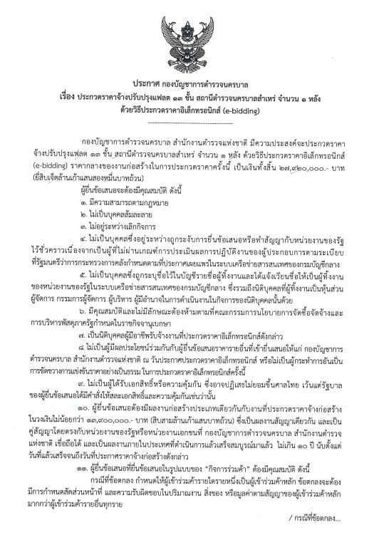 ประกาศ บช.น. เรื่อง ประกวดราคาจ้างปรับปรุงแฟลต 13 ชั้น สน.สำเหร่ จำนวน 1 หลัง ด้วยวิธีประกวดราคาอิเล็กทรอนิกส์ (e-bidding)