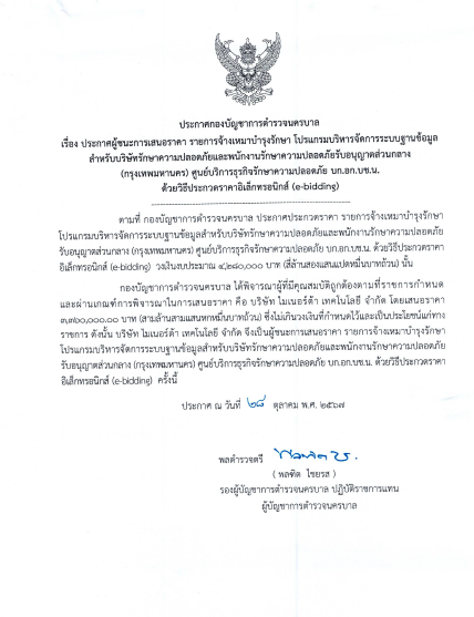 ประกาศกองบังคับการอำนวยการ กองบัญชาการตำรวจนครบาลเรื่อง ประกาศผู้ชนะการเสนอราคา รายการเช่าเครื่องถ่ายเอกสาร โดยวิธีเฉพาะเจาะจง ประจำปีงบประมาณ พ.ศ.2568
