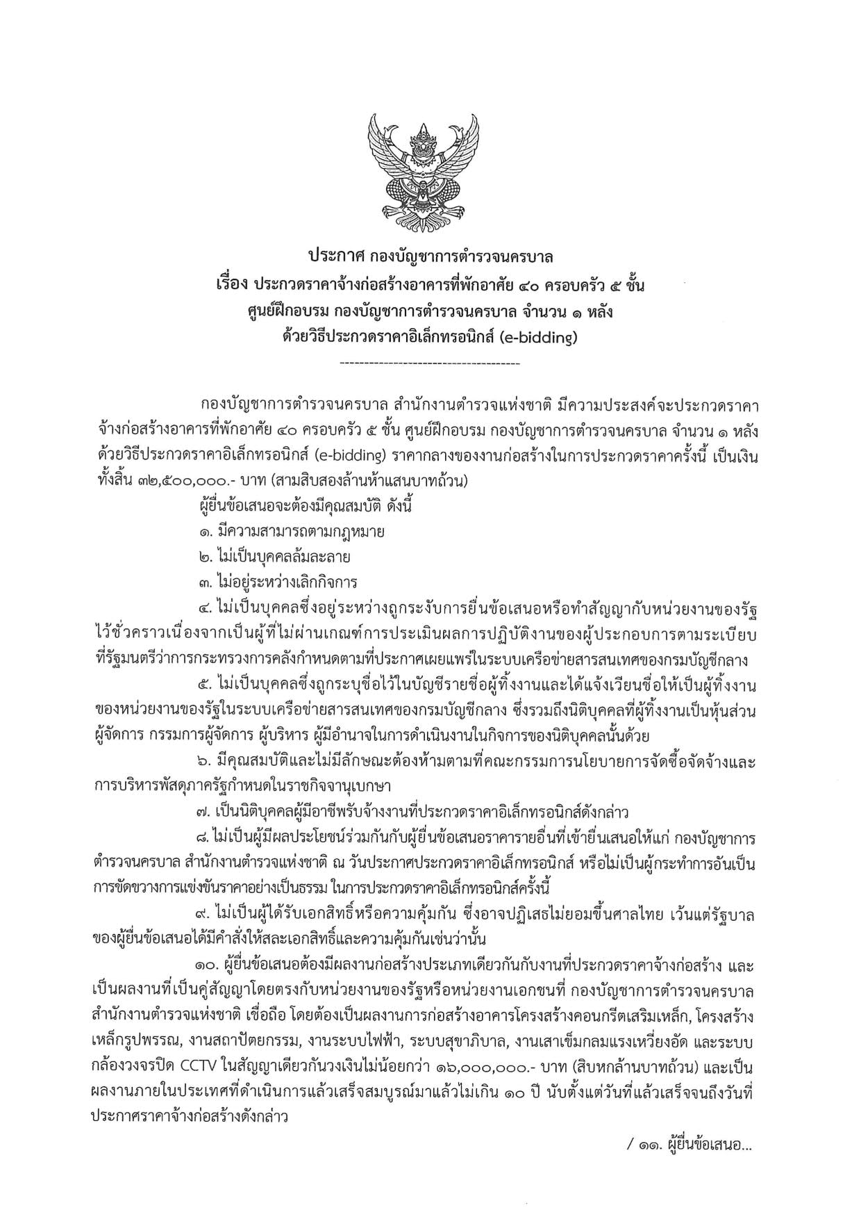 ร่างประกวดราคาจ้างก่อสร้างอาคารที่พักอาศัย 40 ครอบครัว 5 ชั้น ศฝร.บช.น. จำนวน 1 หลัง ด้วยวิธีประกวดราคาอิเล็กทรอนิกส์ (e-bidding)