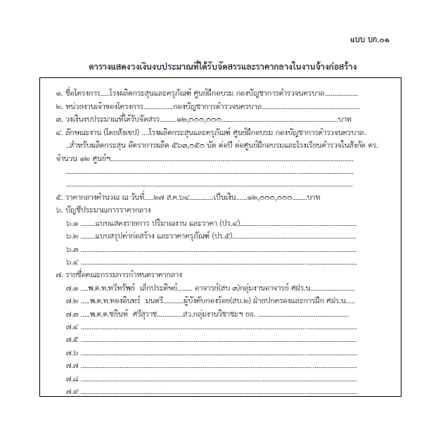 เผยแพร่ราคากลางงานก่อสร้างโรงผลิตกระสุนและครุภัณฑ์ ศูนย์ฝึกอบรม กองบัญชาการตำรวจนครบาล จำนวน 1 หลัง